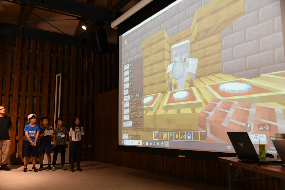 午前中は、慶應義塾大学山形研究室の方々と一緒に未来を体験(生成AI、次世代モビリティ)したり、実際にマインクラフトでどんなものを作るかアイデア出しや発表を行ないました。