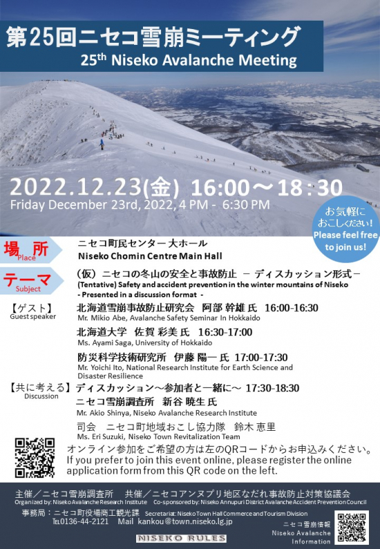 【本日開催: 12/23 16:00~】第25回ニセコ雪崩ミーティングを開催します!